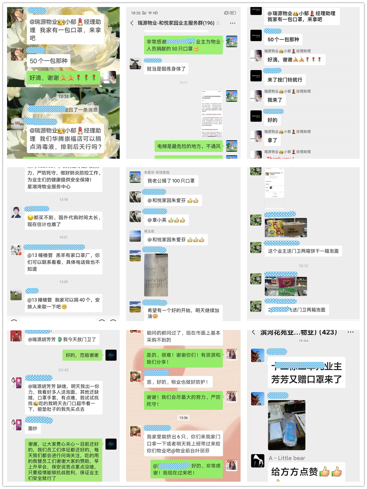 守護在一線的瑞源人時刻奔走在防疫控疫的道路上,這一切,你們都看在了眼里。當得知我們防護物資緊張時,你們及時伸出了援手。熱心的業(yè)主們自發(fā)的為物業(yè)人員捐錢買物資,捐贈消毒液、口罩、手套等防護用品。還有每天堅持為一線的物業(yè)人員送去生活必需品,給我們帶來了暖心的問候。這一份份的暖心,讓我們更具備奮戰(zhàn)的勇氣!